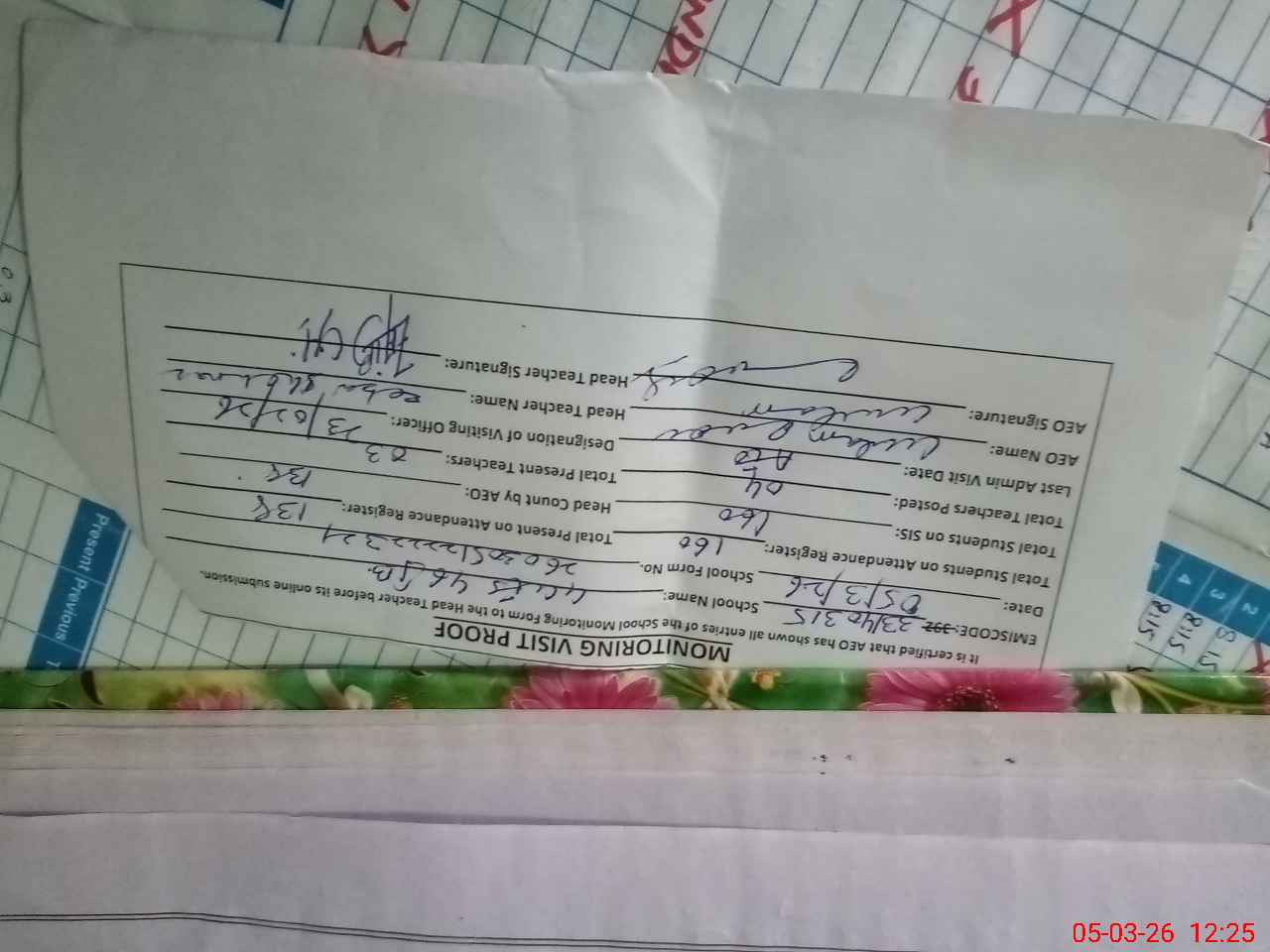| Attendance Register | Head Teacher | MEA with School | Visit Proof |