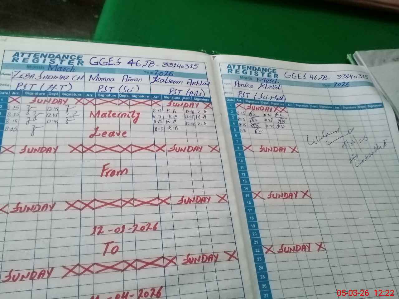 | 33**** | Mo**** Ai**** | PST Science/Maths | Regular | 0 | 0 | 0 | 0 | 0 | 0 | 0 | 0 | 0 | Maternity |
