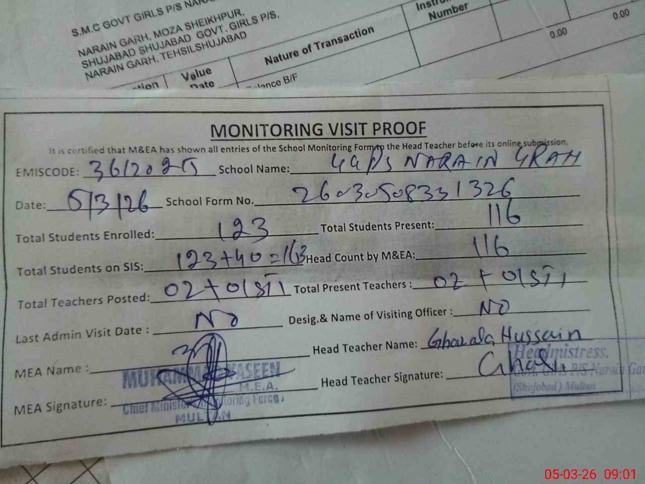 | EMIS Code: 36120215 | Name of School: GGPS NARAIN GRAH BASTI BANGALA SHUJABAD | |||