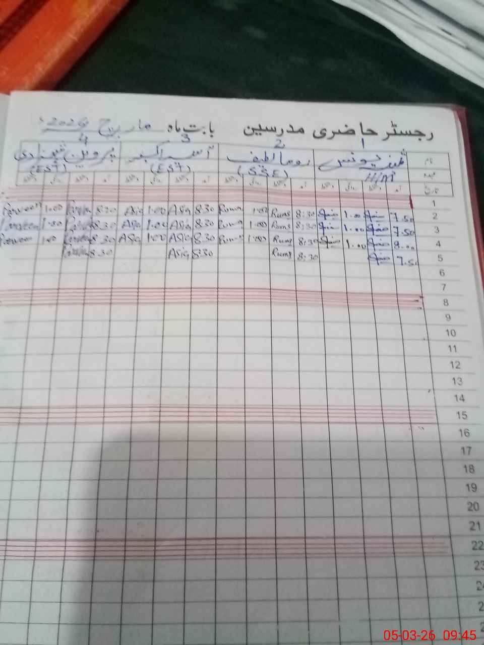 | CNIC | Full Name | Designation | R/C | Absence During Last Calender Month |