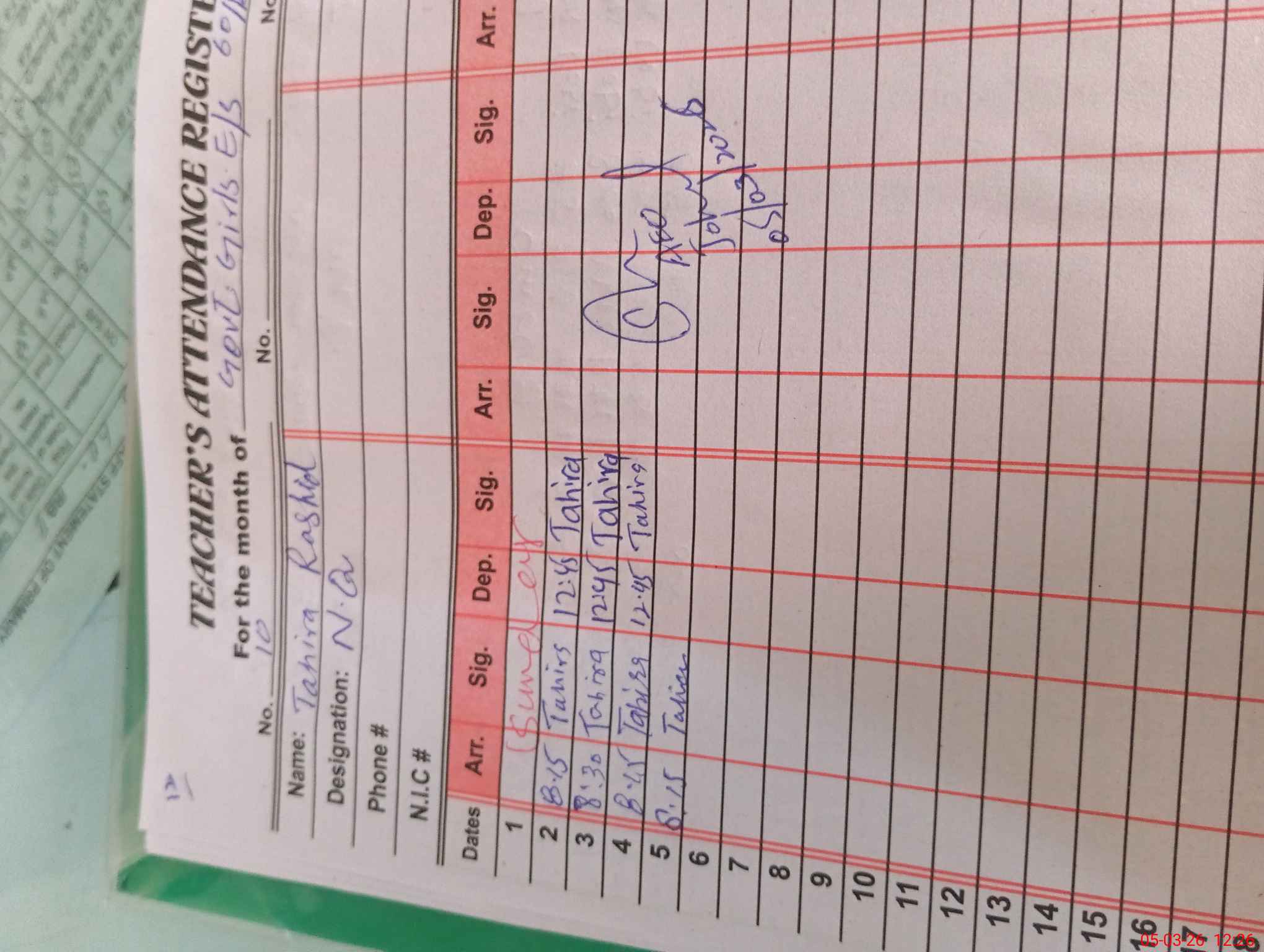 | Name: NA**** Mu**** Designation: (School Headmaster's/Headmistress's) EST .(GENERAL) Phone/Cell Number: 03**** |