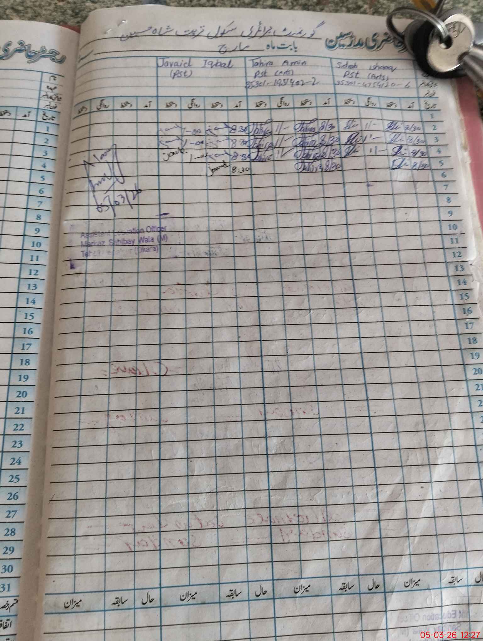 | Name: SI**** IS**** Designation: (School Headmaster's/Headmistress's) PST Phone/Cell Number: 03**** |