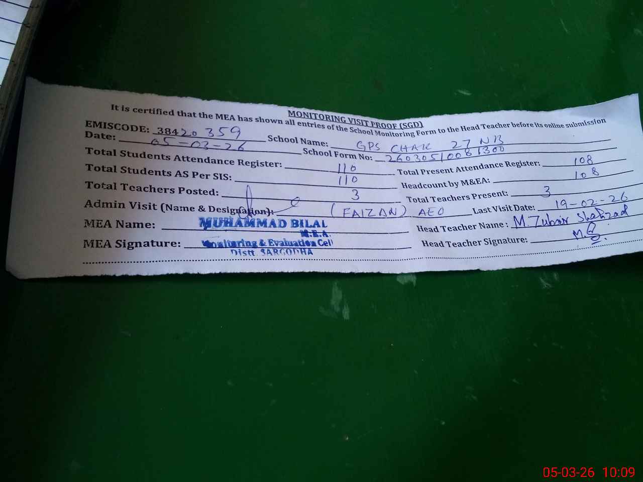 | EMIS Code: 38420359 | Name of School: GPS CHAK NO.27 NB | |||
