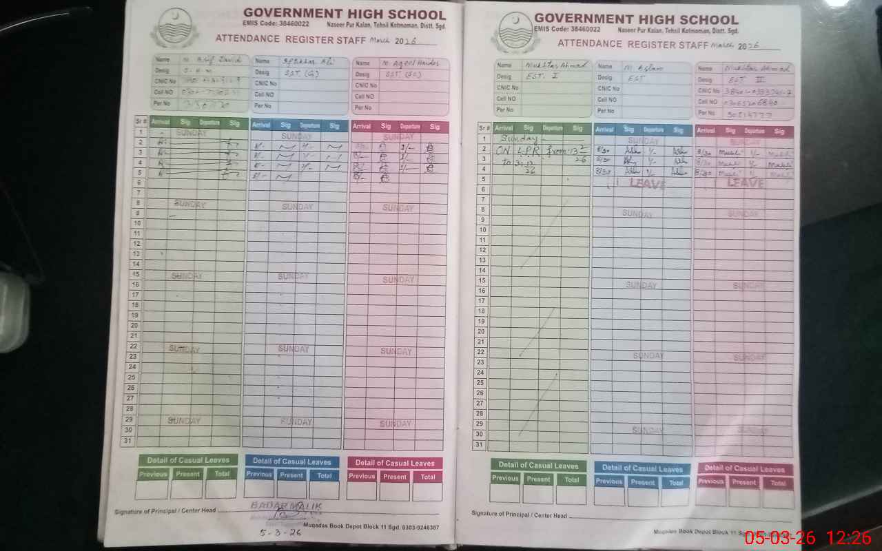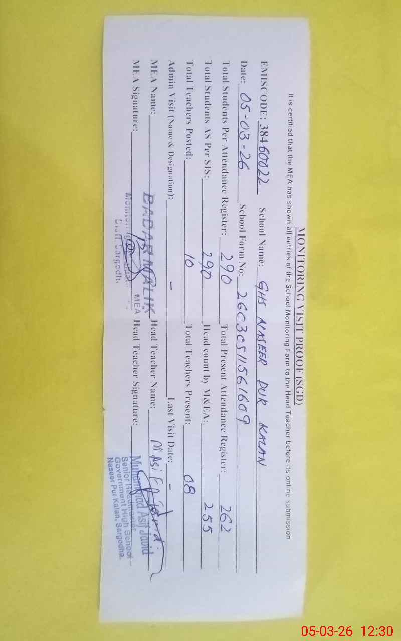 | EMIS Code: 38460022 | Name of School: GHS NASEER PUR KALAN | |||