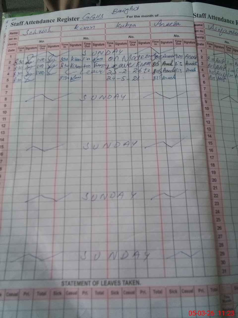 | Leave | Duty | Absent | Maternity | Medical | Ex- Pak |