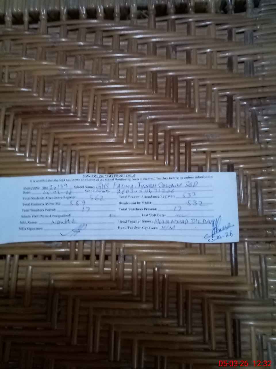 | Attendance Register | Head Teacher | MEA with School | Visit Proof |