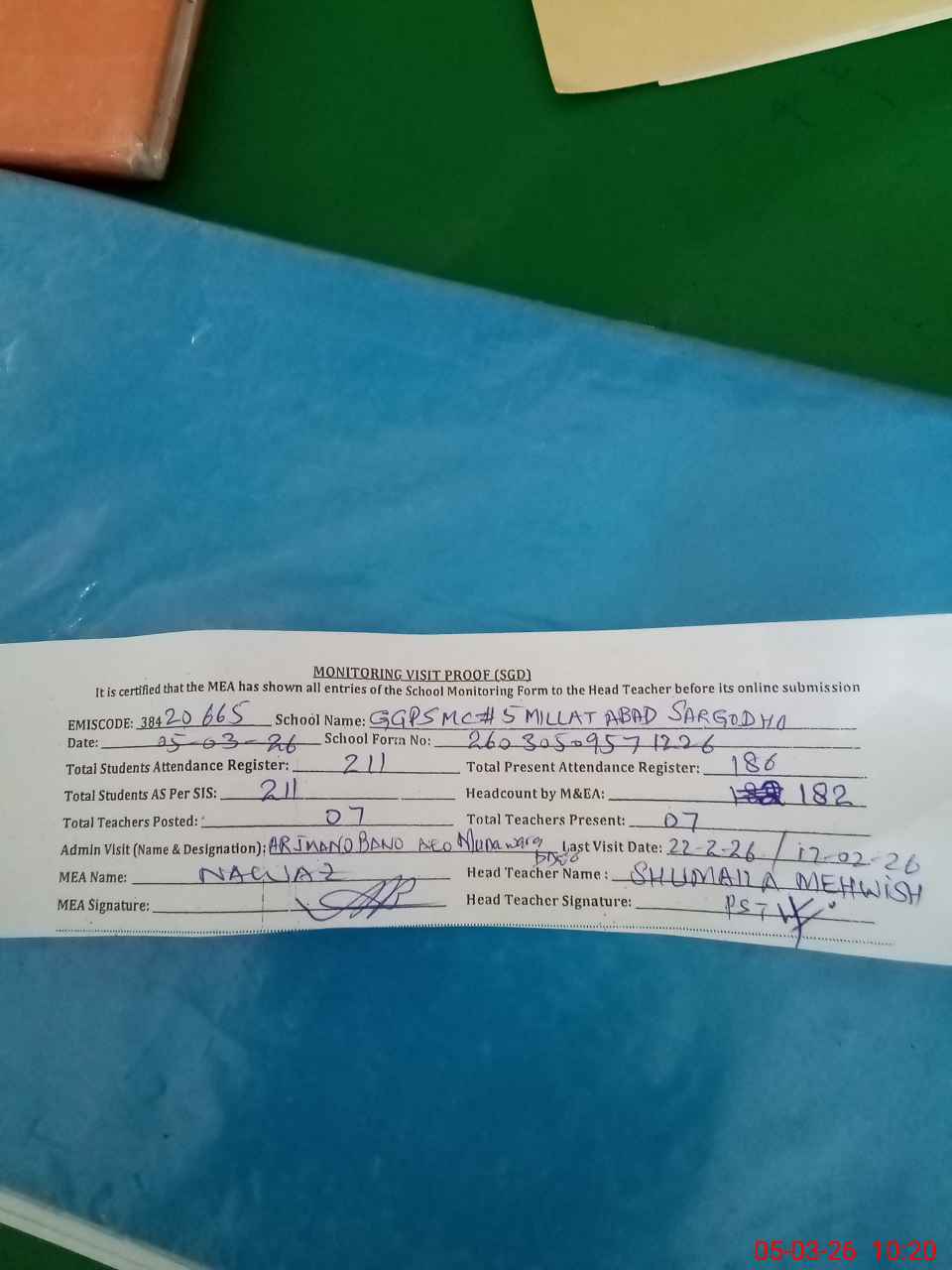 | EMIS Code: 38420665 | Name of School: GGPS MC MILLAT ABAD SARGODHA | |||