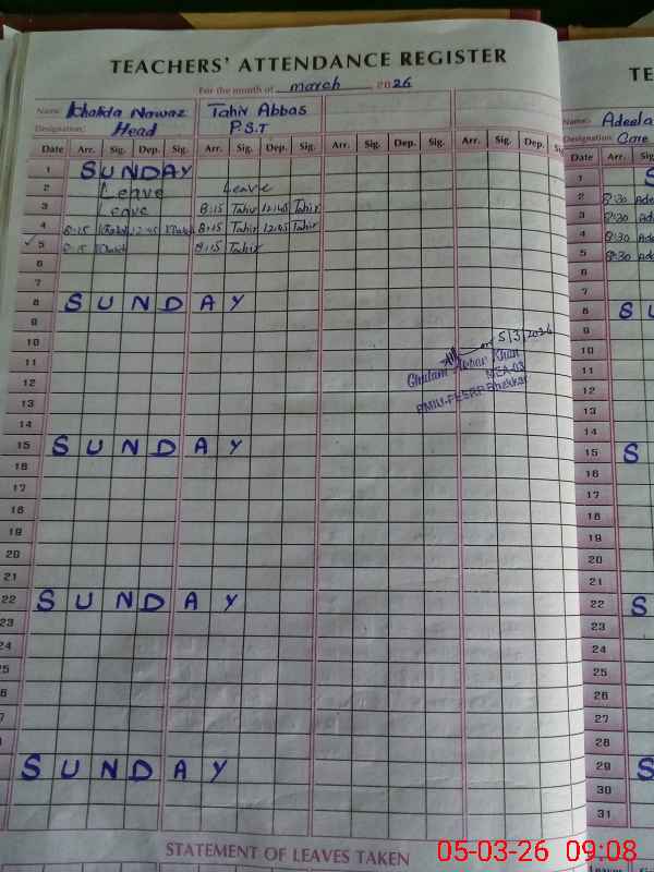 | Name: Kh**** Na**** Designation: (School Headmaster's/Headmistress's) PST Phone/Cell Number: 03**** |