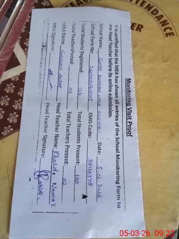 | EMIS Code: 38110378 | Name of School: GMPS KATHAN WALA SHUMALI | |||