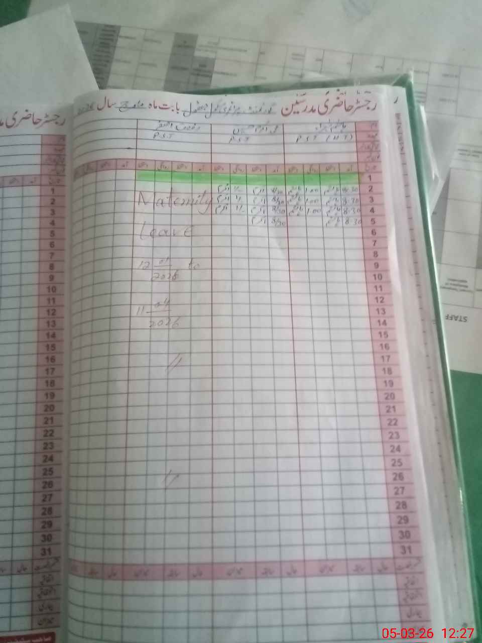 | Leave | Duty | Absent | Maternity | Medical | Ex- Pak |