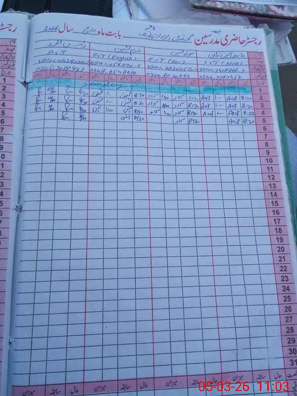| Name: Ar**** Hu**** Kh**** Designation: (School Headmaster's/Headmistress's) SST Phone/Cell Number: 03**** |