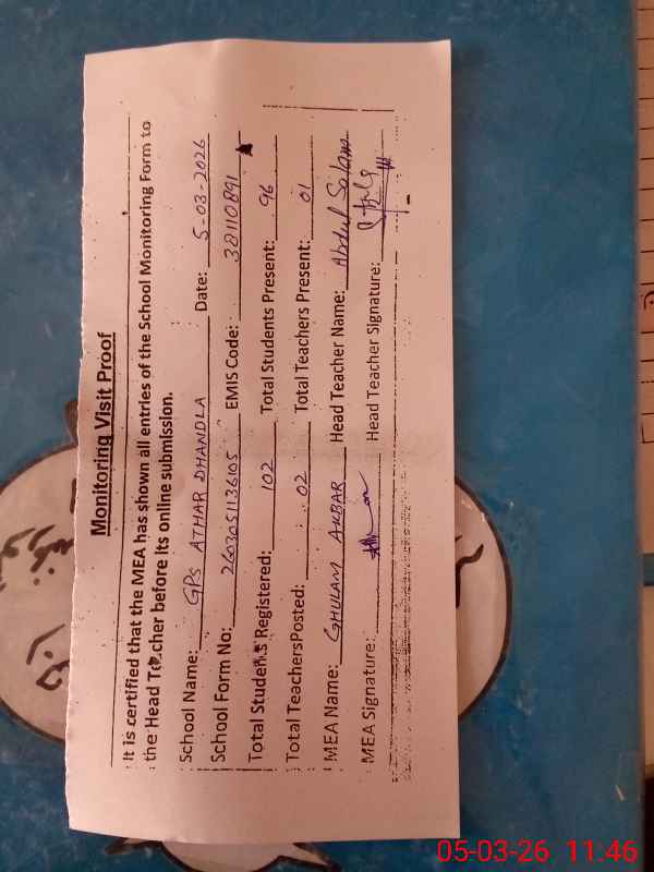 | EMIS Code: 38110891 | Name of School: GPS BASTI ATTAR DHANDLA | |||