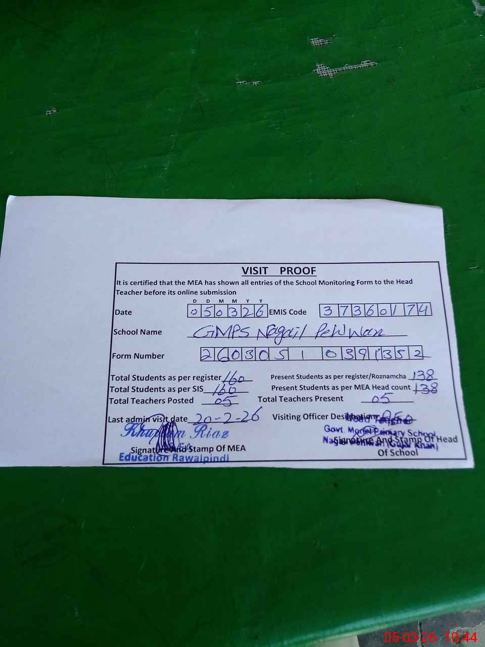 | EMIS Code: 37360174 | Name of School: GMPS NAGIAL PHALWAN | |||