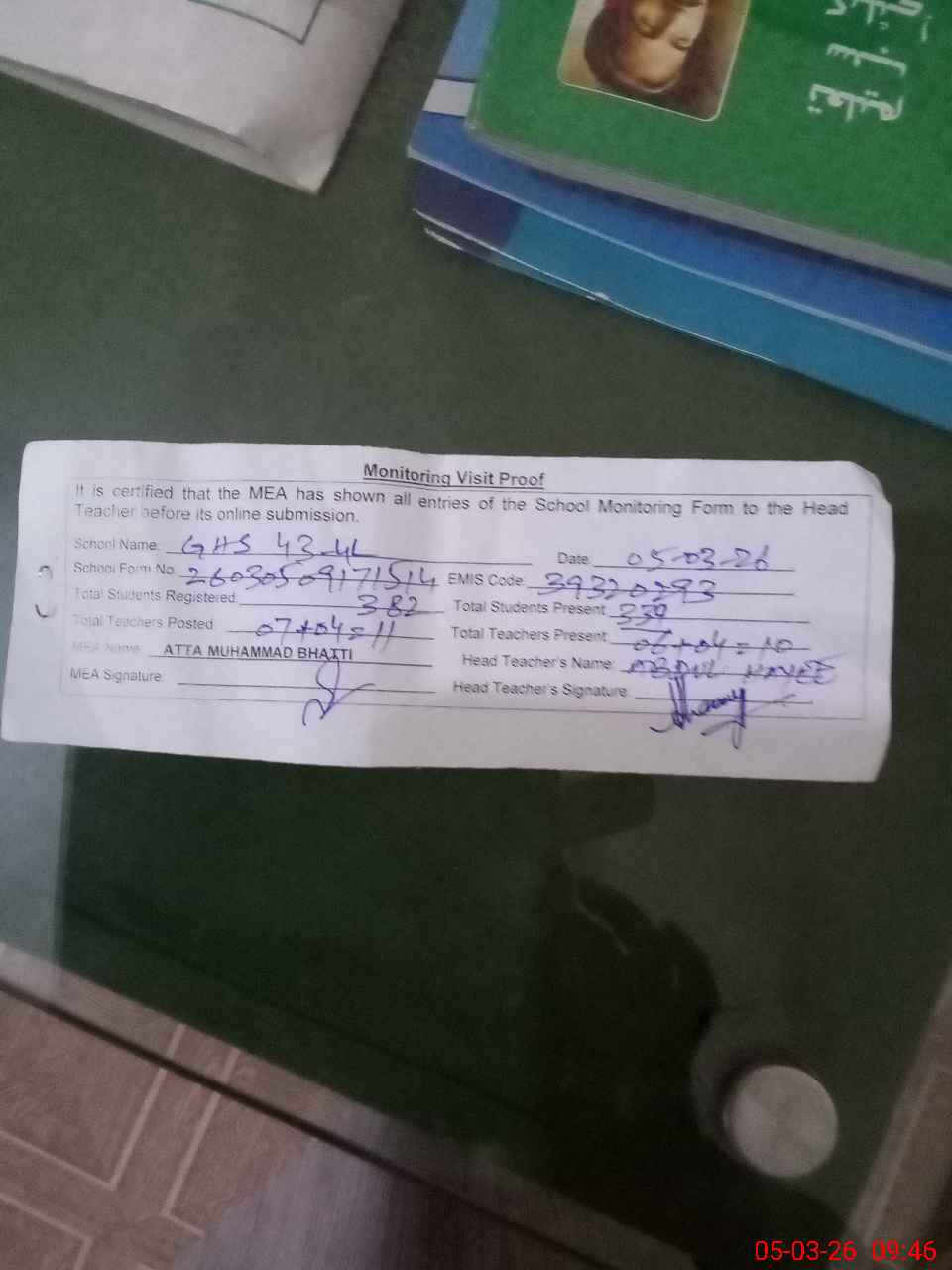 | EMIS Code: 39320293 | Name of School: GHS CHAK 43/4-L | |||