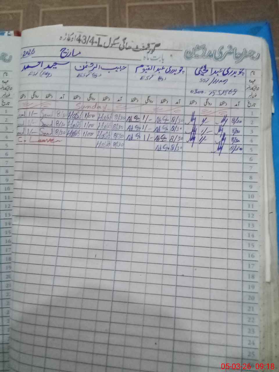 | Name: AB**** Designation: (School Headmaster's/Headmistress's) SST HM Phone/Cell Number: 03**** |