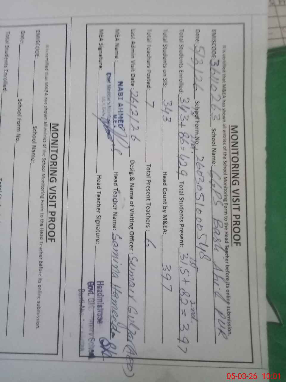 | EMIS Code: 36110263 | Name of School: GGPS BASTI AHIL PUR MULTAN | |||