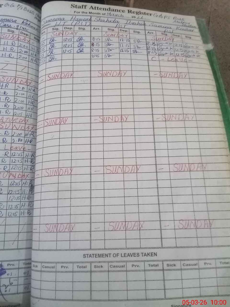 | Leave | Duty | Absent | Maternity | Medical | Ex- Pak |