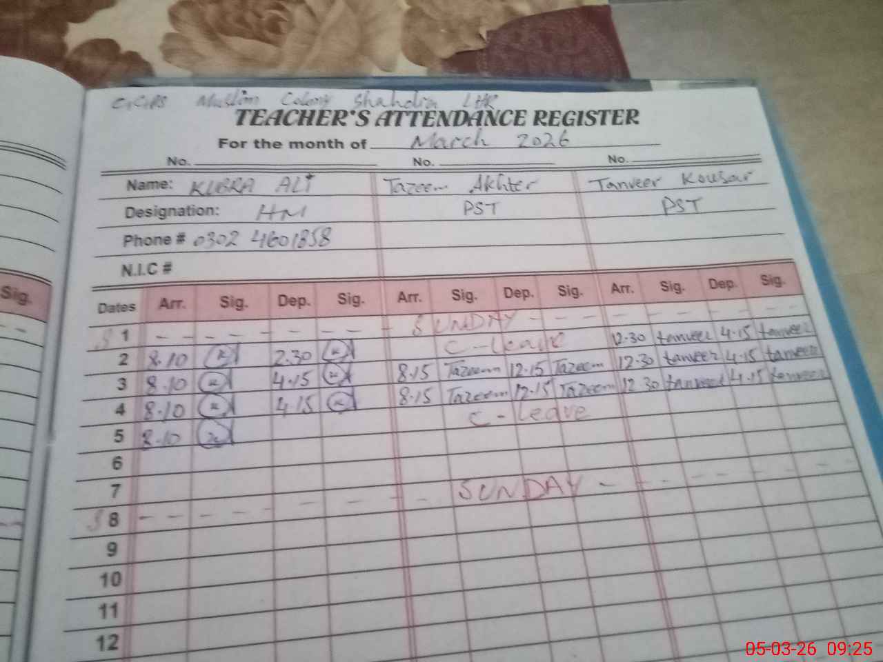 | Name: KU**** AL**** AS**** Designation: (School Headmaster's/Headmistress's) Head Mistress Phone/Cell Number: 03**** |