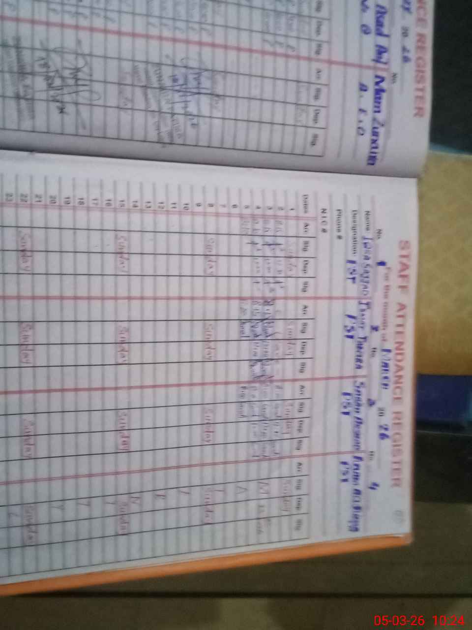 | 53**** | SA**** NA**** | NAIB QASID | Regular | 1 | 0 | 0 | 0 | 0 | 0 | 0 | 0 | 1 | Casual |