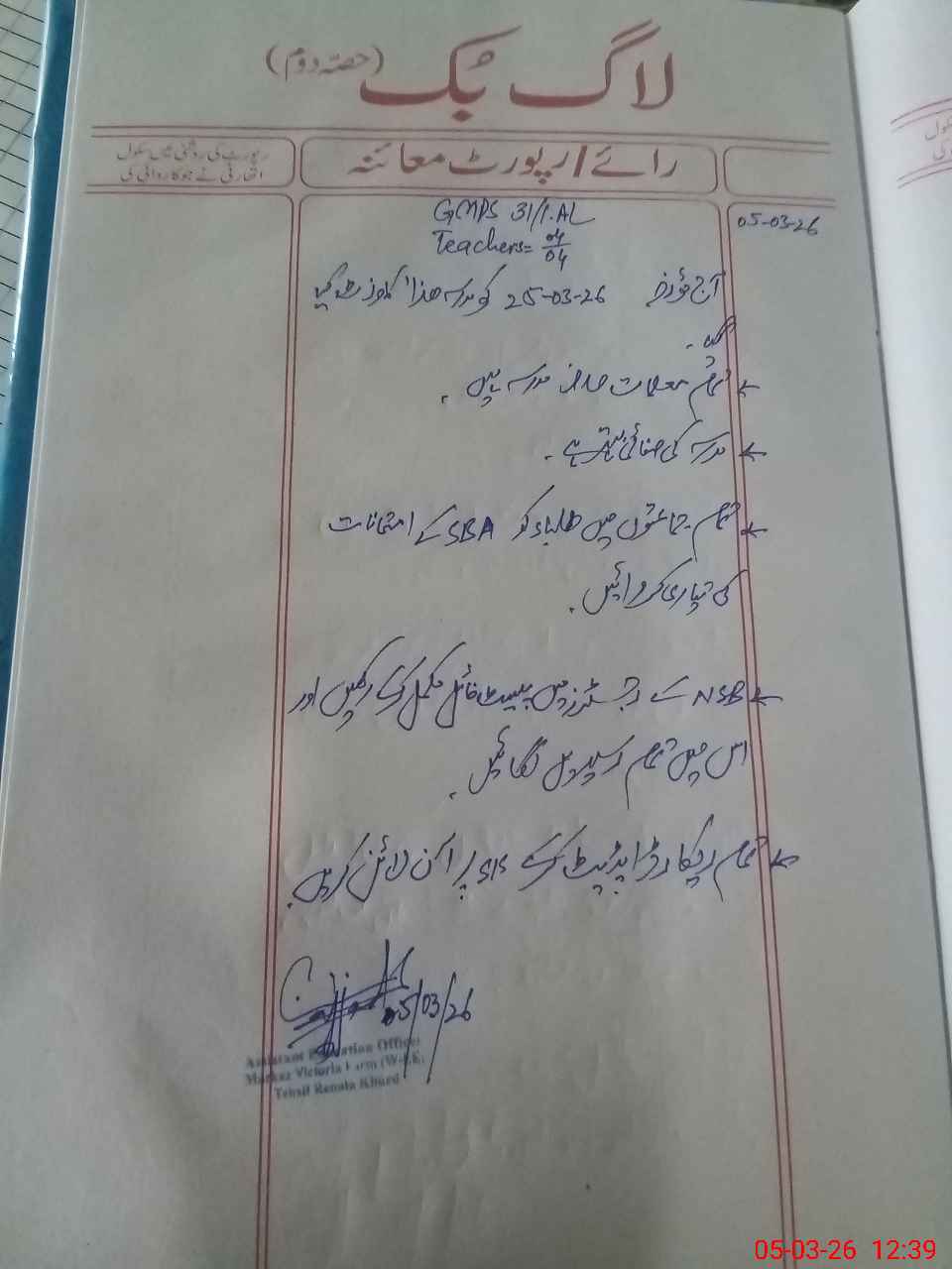 | Certified that this School was Inspected by the Undersigned MEA/DMO Today and the Information Stated Above is as Per Record. | |||||