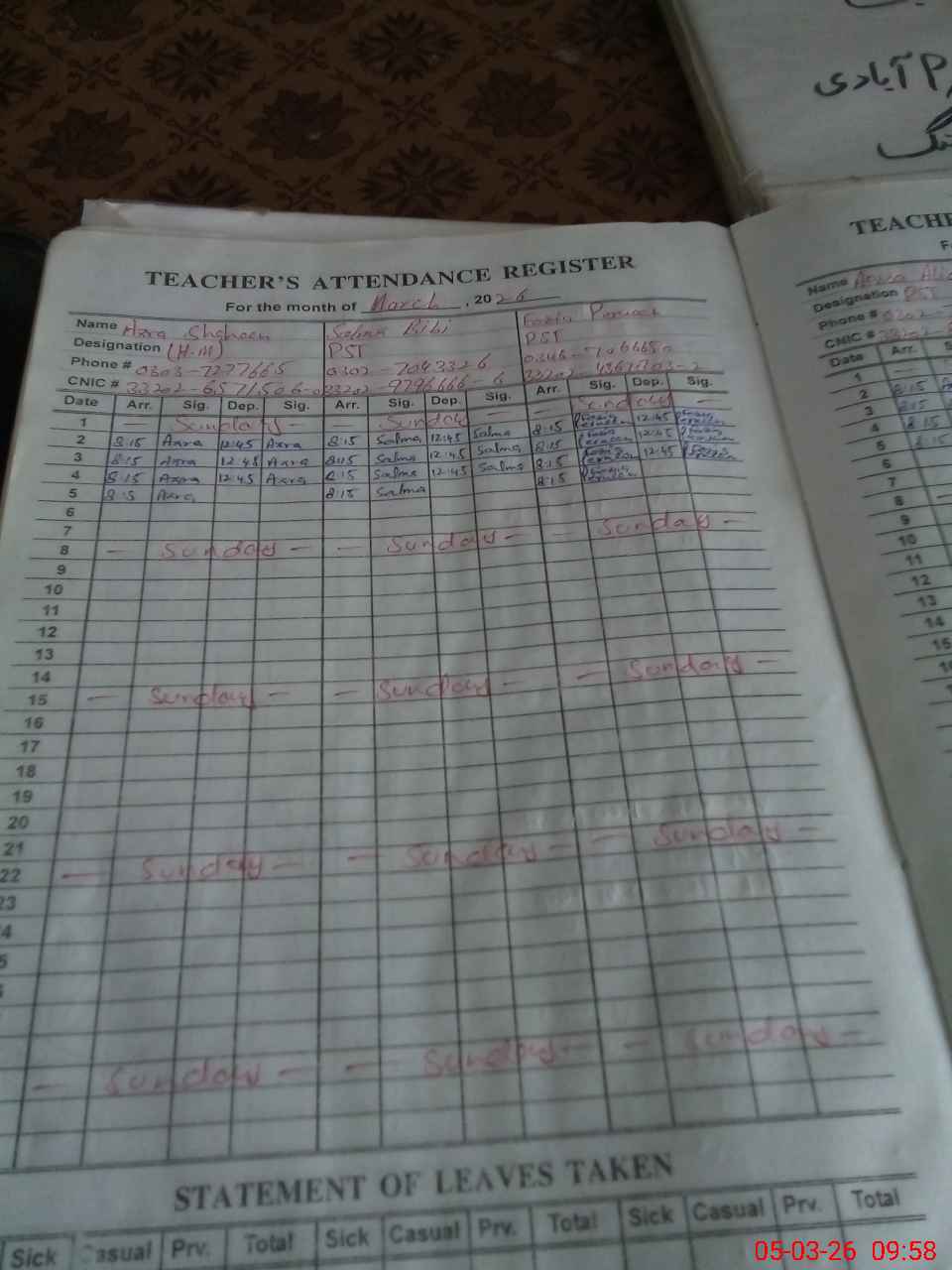 | Name: Az**** Sh**** Designation: (School Headmaster's/Headmistress's) PST Phone/Cell Number: 03**** |