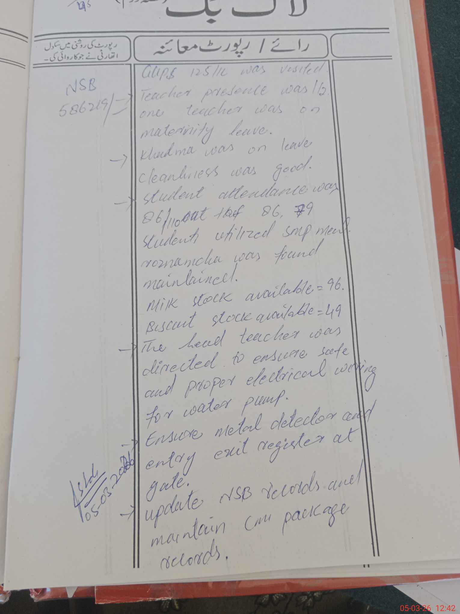| Attendance Register | Head Teacher | MEA with School | Visit Proof |