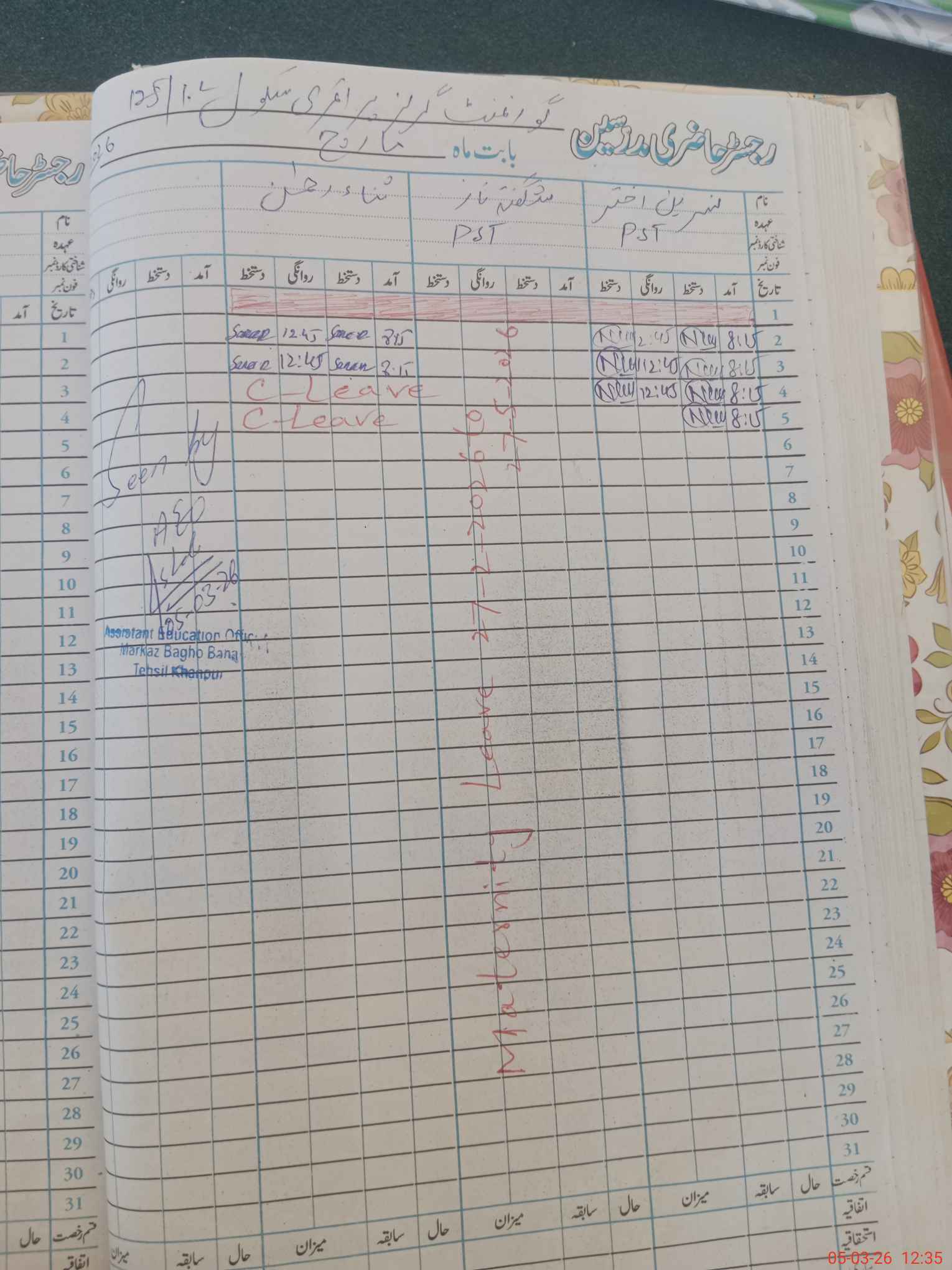 | Name: Na**** Ak**** Designation: (School Headmaster's/Headmistress's) PST Phone/Cell Number: 03**** |