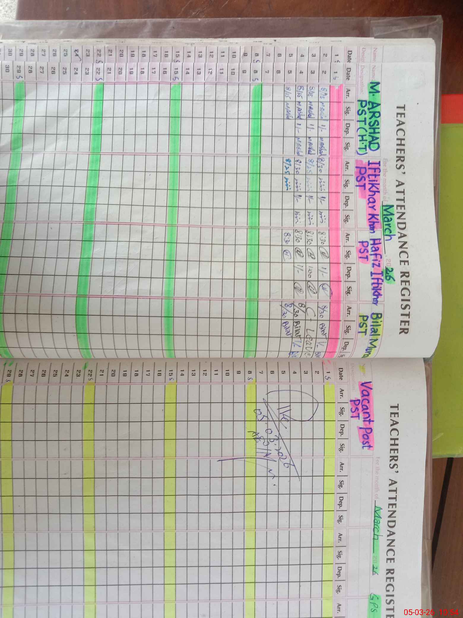 | Name: MU**** AR**** Designation: (School Headmaster's/Headmistress's) PST Phone/Cell Number: 03**** |