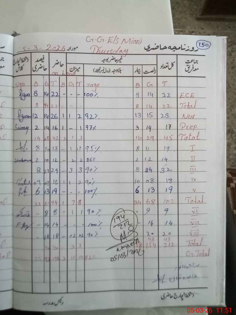 | ECE | Un-admt | K | 1 | 2 | 3 | 4 | 5 | 6 | 7 | 8 | Total | |||||