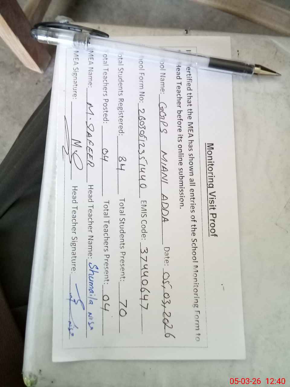 | Certified that this School was Inspected by the Undersigned MEA/DMO Today and the Information Stated Above is as Per Record. | |||||