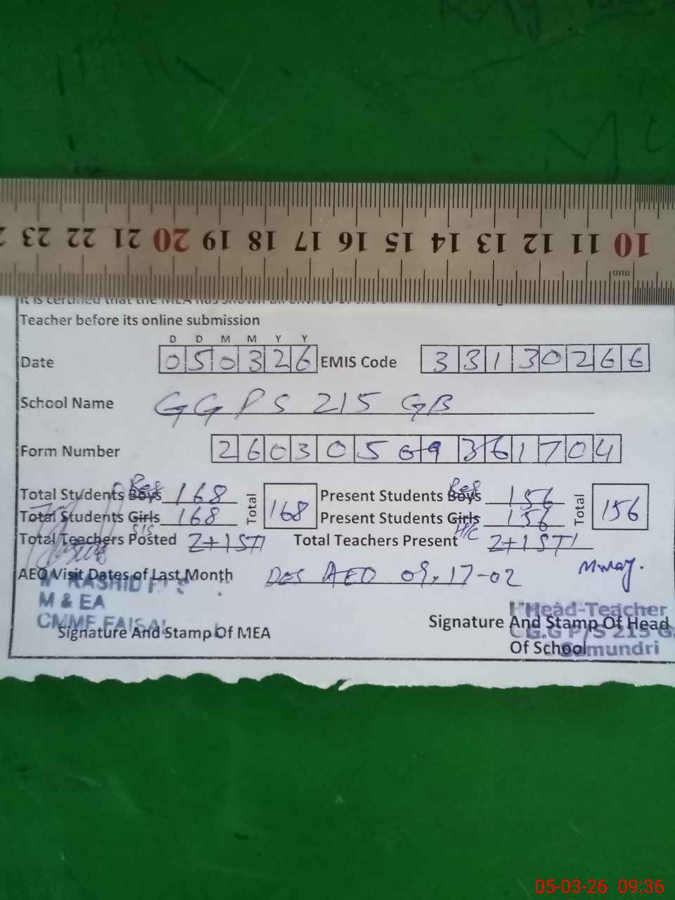 | EMIS Code: 33130266 | Name of School: GGPS CHAK 215 GB MAMUNKANJAN | |||