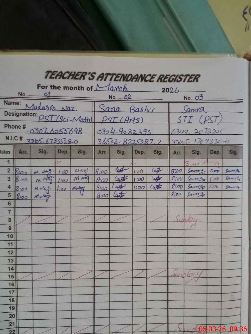 | Name: MU**** NA**** Designation: (School Headmaster's/Headmistress's) PST Phone/Cell Number: 03**** |