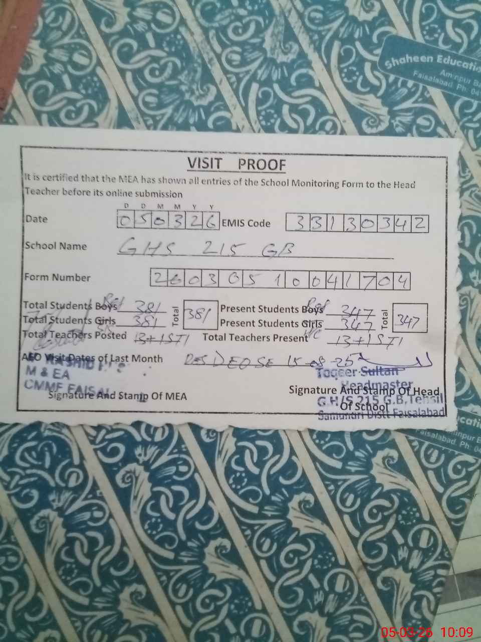 | EMIS Code: 33130342 | Name of School: GHS CHAK 215 GB PO SAME SAMUNDRI FSD | |||