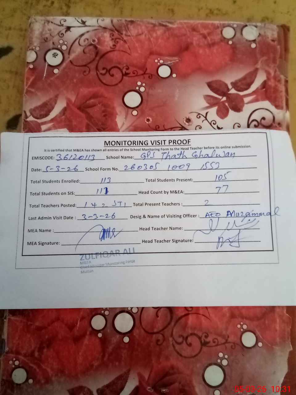 | EMIS Code: 36120113 | Name of School: GPS THATH GHALWAN P/O THATH GHAWAN | |||