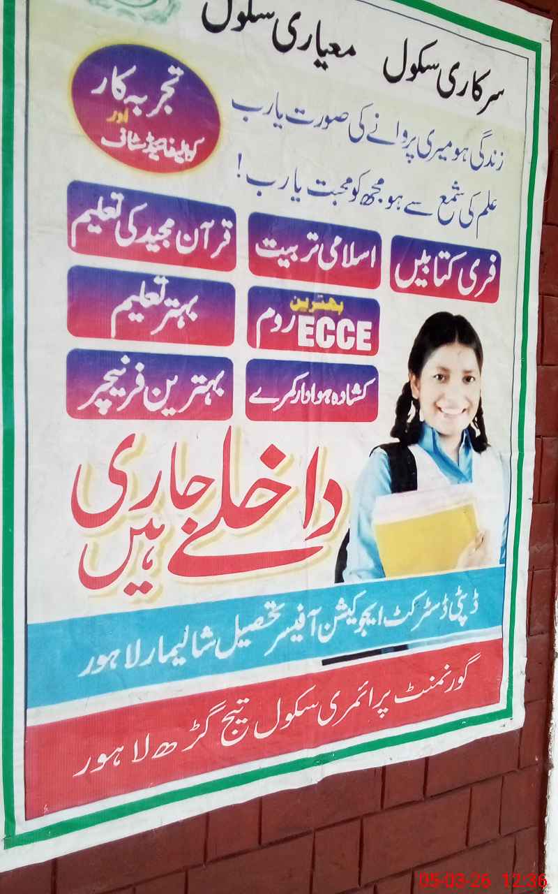 | District: LAHORE | Tehsil: SHALIMAR | Markaz: BHASEEN - MALE | Level: Primary | |