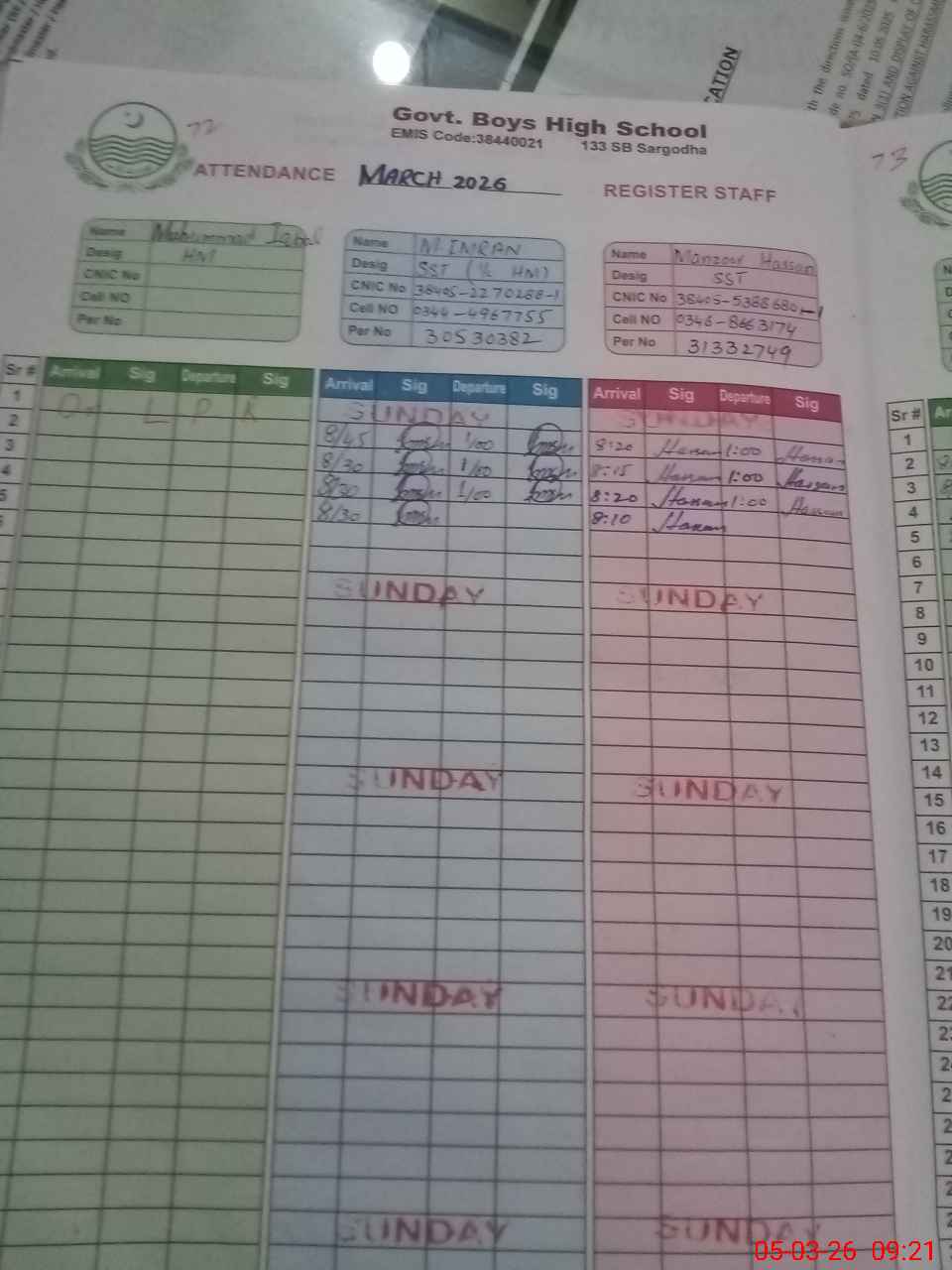 | Name: MU**** IM**** Designation: (School Headmaster's/Headmistress's) SST ARTS Phone/Cell Number: 03**** |