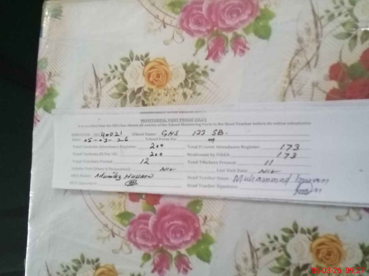 | Attendance Register | Head Teacher | MEA with School | Visit Proof |