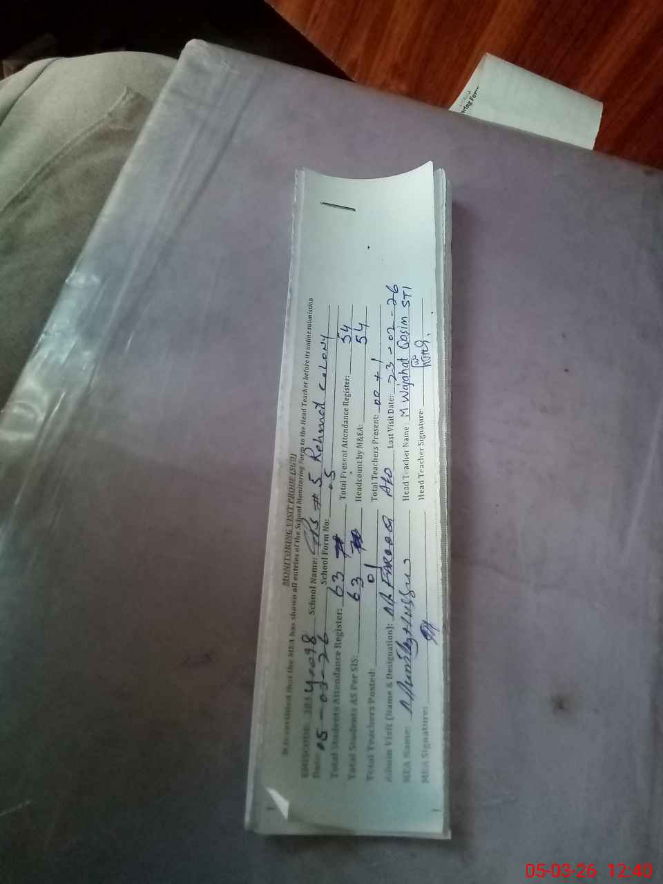 | Attendance Register | Head Teacher | MEA with School | Visit Proof |