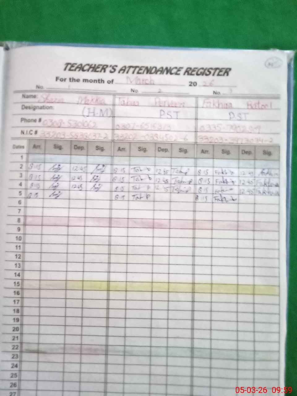 | Name: SH**** MA**** Designation: (School Headmaster's/Headmistress's) PST Phone/Cell Number: 03**** |