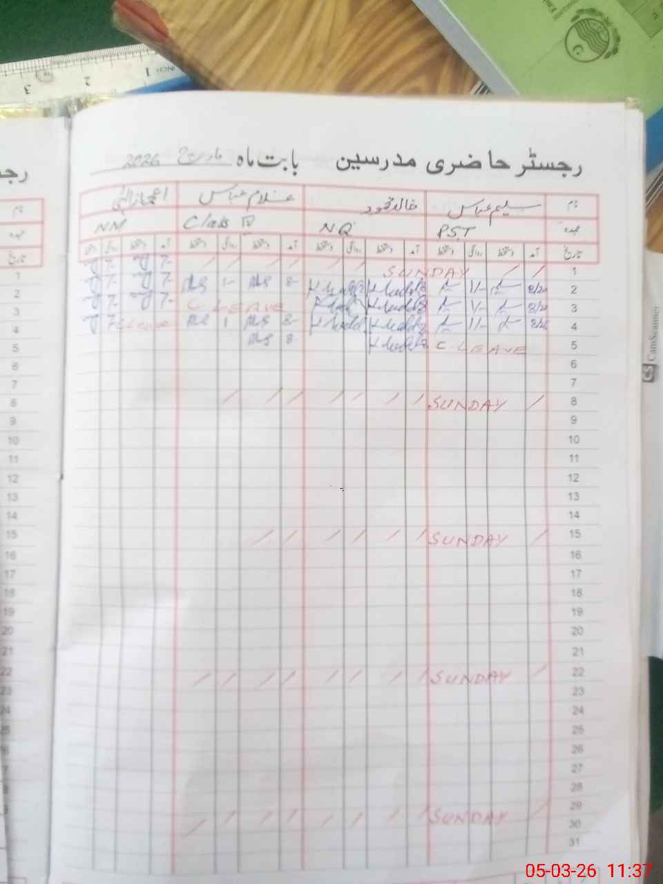 | CNIC | Full Name | Designation | R/C | Absence During Last Calender Month |