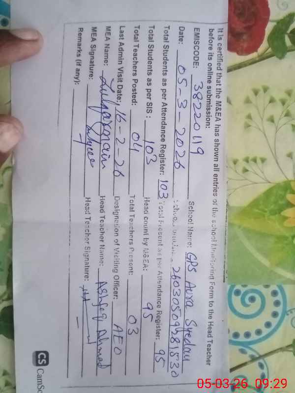 | EMIS Code: 38220119 | Name of School: GPS AURA SYEDAN | |||