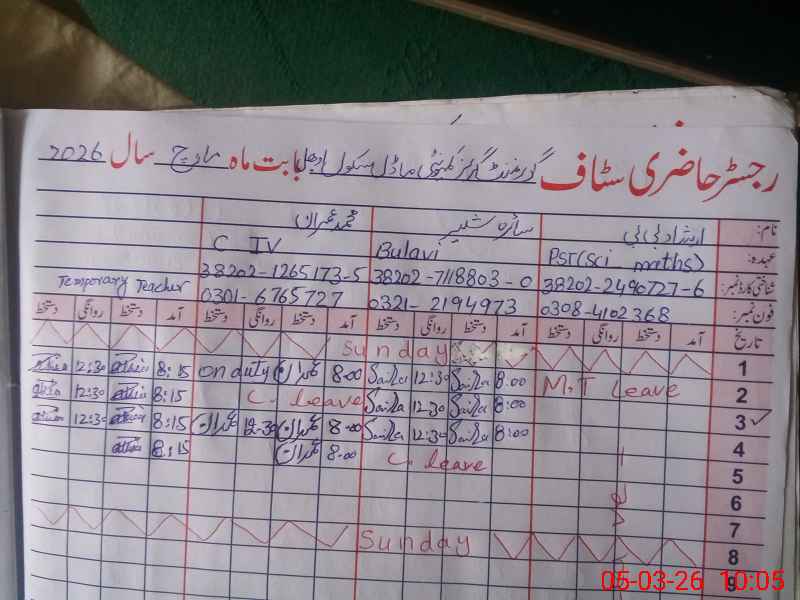 | Name: Ir**** Bi**** Designation: (School Headmaster's/Headmistress's) Pst Phone/Cell Number: 03**** |