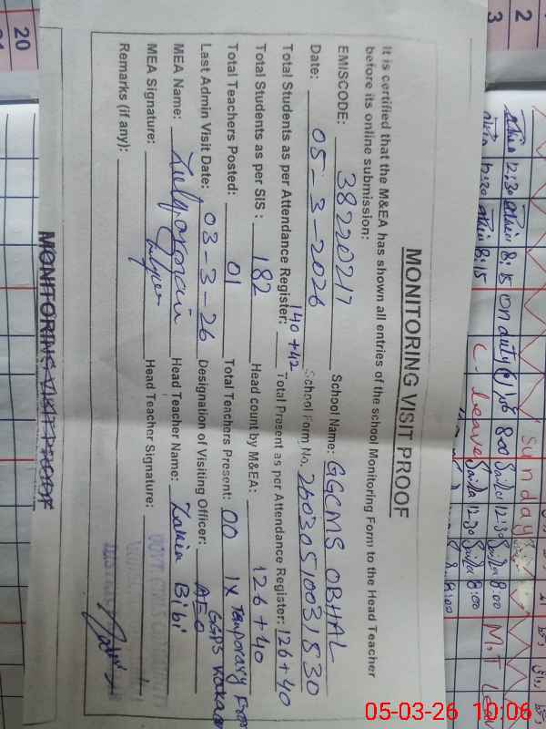 | EMIS Code: 38220217 | Name of School: GGCMS OBHAL | |||