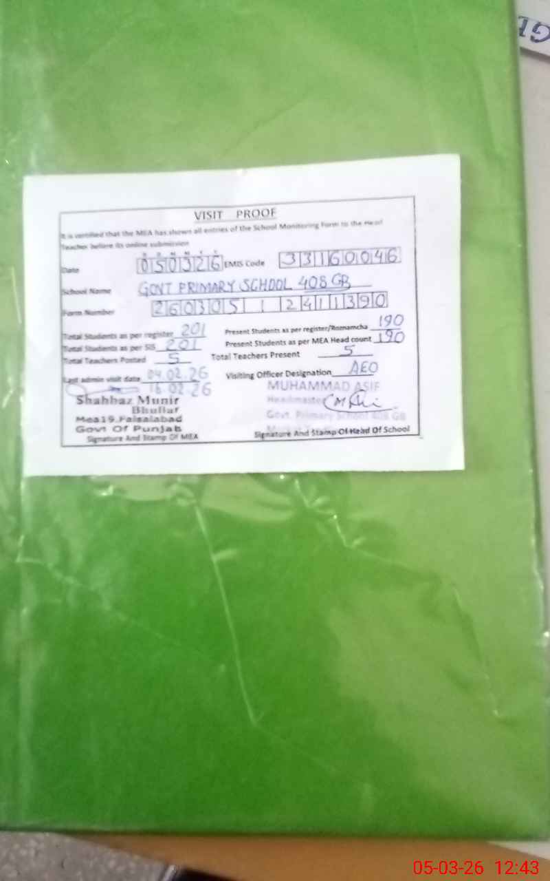 | EMIS Code: 33160046 | Name of School: GPS CHAK 408 GB TANDLIANWALA | |||