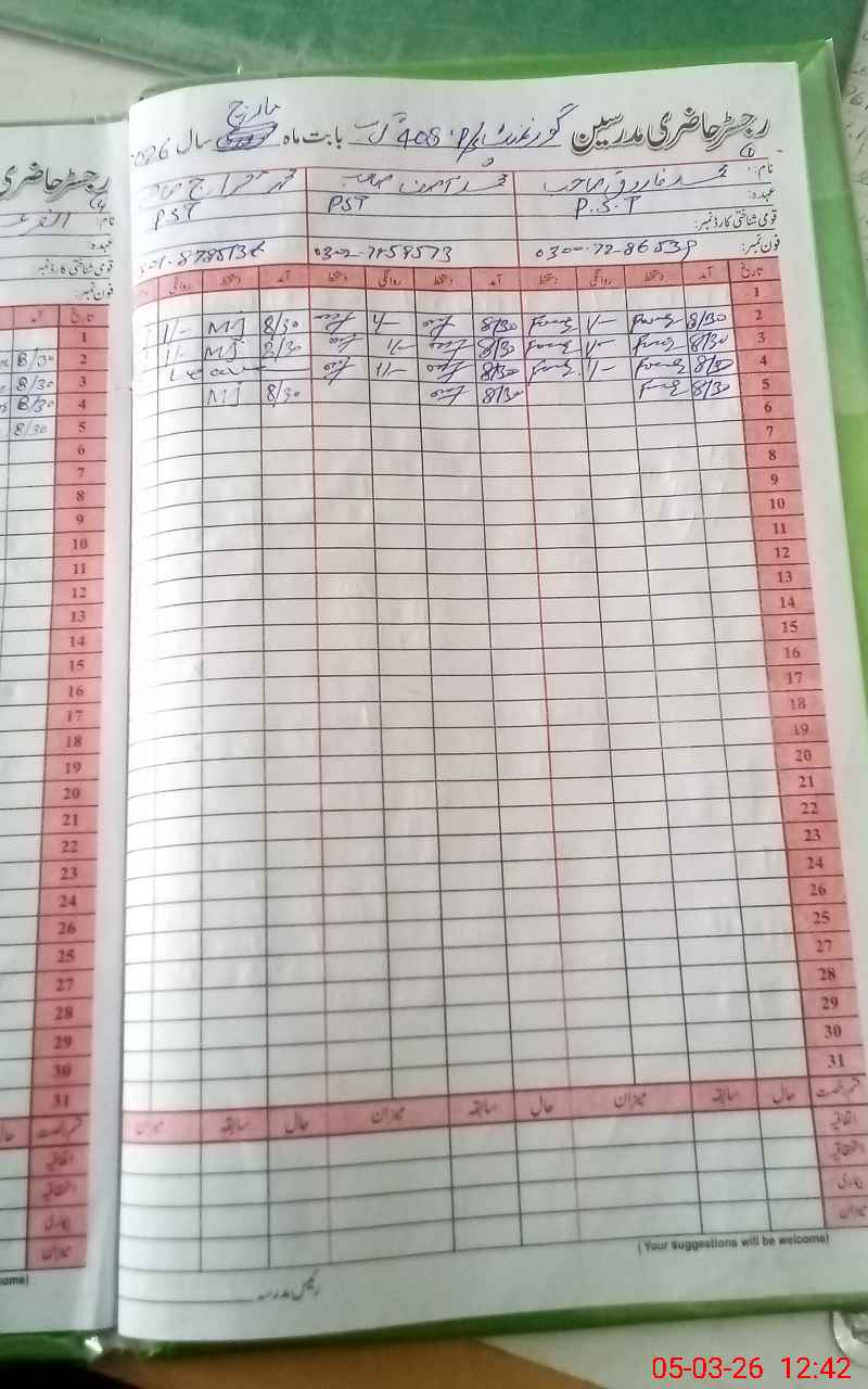 | Name: MU**** AS**** Designation: (School Headmaster's/Headmistress's) PST Phone/Cell Number: 03**** |