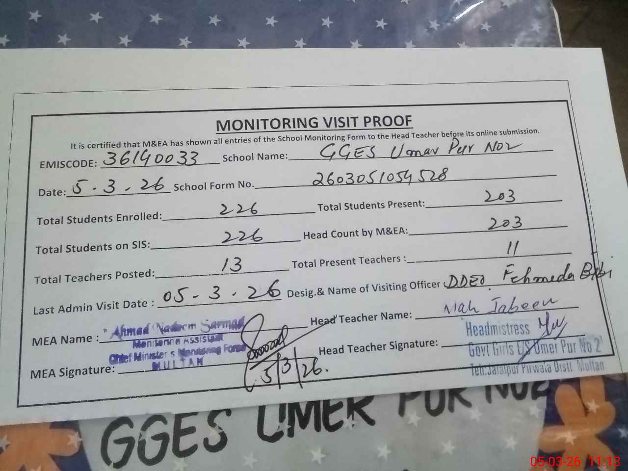 | EMIS Code: 36140033 | Name of School: GGES UMER PUR NO.2 | |||
