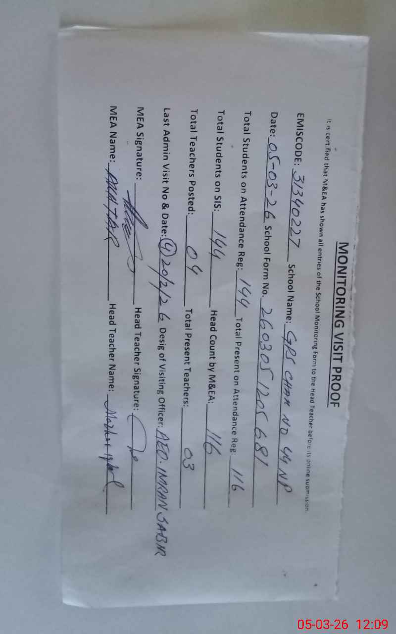| EMIS Code: 31340227 | Name of School: GPS CHAK NO. 44 NP | |||