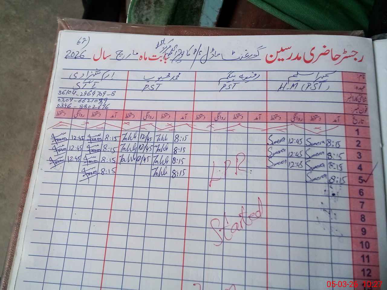| Name: Su**** Sa**** Designation: (School Headmaster's/Headmistress's) PST Phone/Cell Number: 03**** |