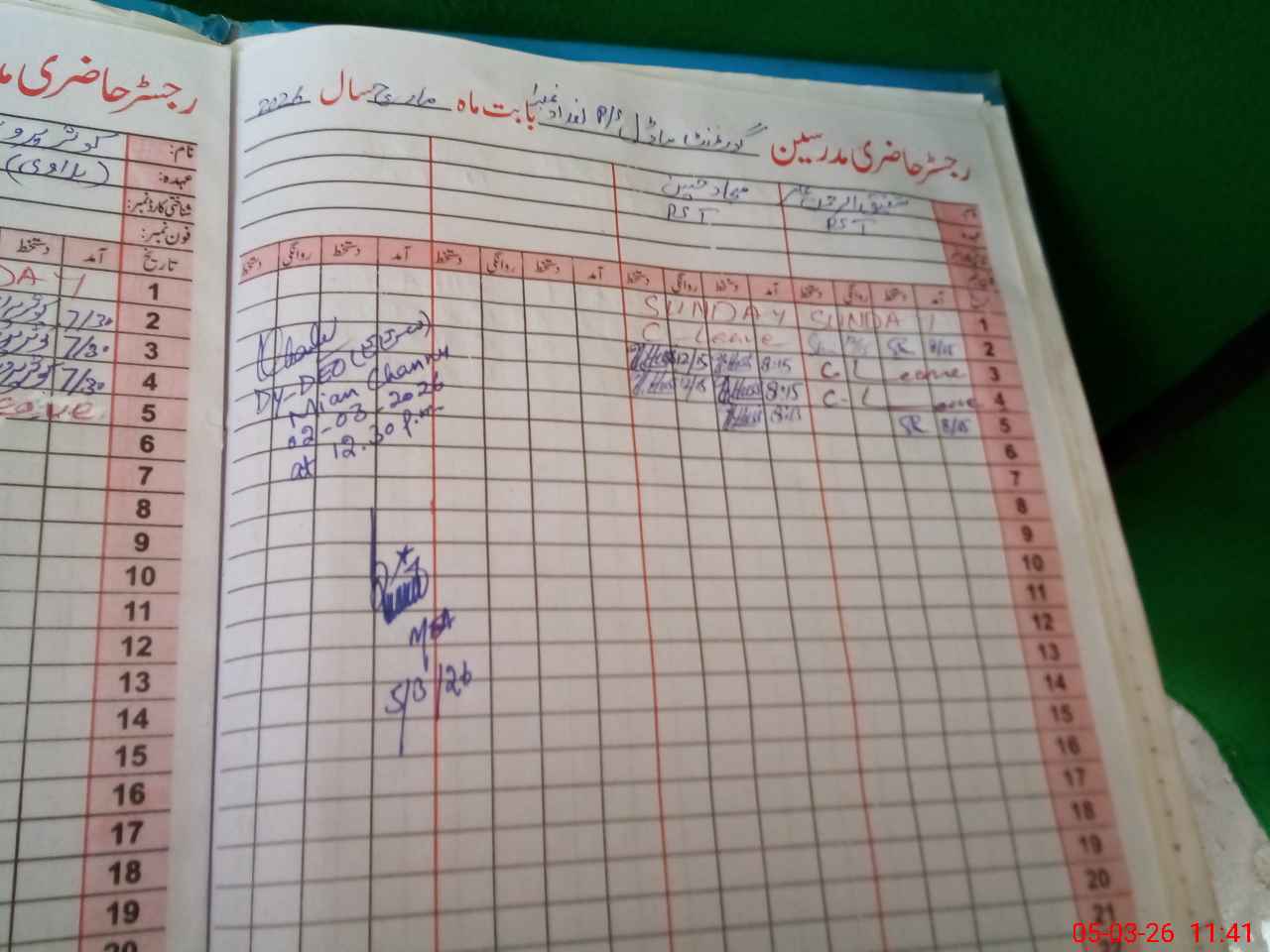 | Name: NO**** TA**** Designation: (School Headmaster's/Headmistress's) PST/PTC/JV Phone/Cell Number: 03**** |
