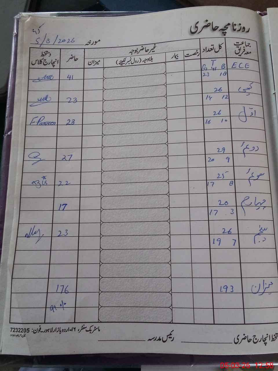 | CNIC | Full Name | Designation | R/C | Absence During Last Calender Month |